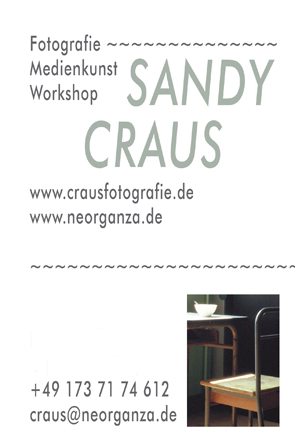 Impressum: Trotz sorgfältiger inhaltlicher Kontrolle wird keine Haftung für die Inhalte externer Links übernommen. Für den Inhalt der verlinkten Seiten sind ausschließlich deren Betreiber verantwortlich. Struktur und Inhalt der Website sind urheberrechtlich geschützt. Die Vervielfältigung von Informationen oder Daten, insbesondere die Verwendung von Texten oder Bildmaterial bedarf der vorherigen Zustimmung. Fotografie/Bildnachweis: Sandy Craus und VG-Bildkunst |